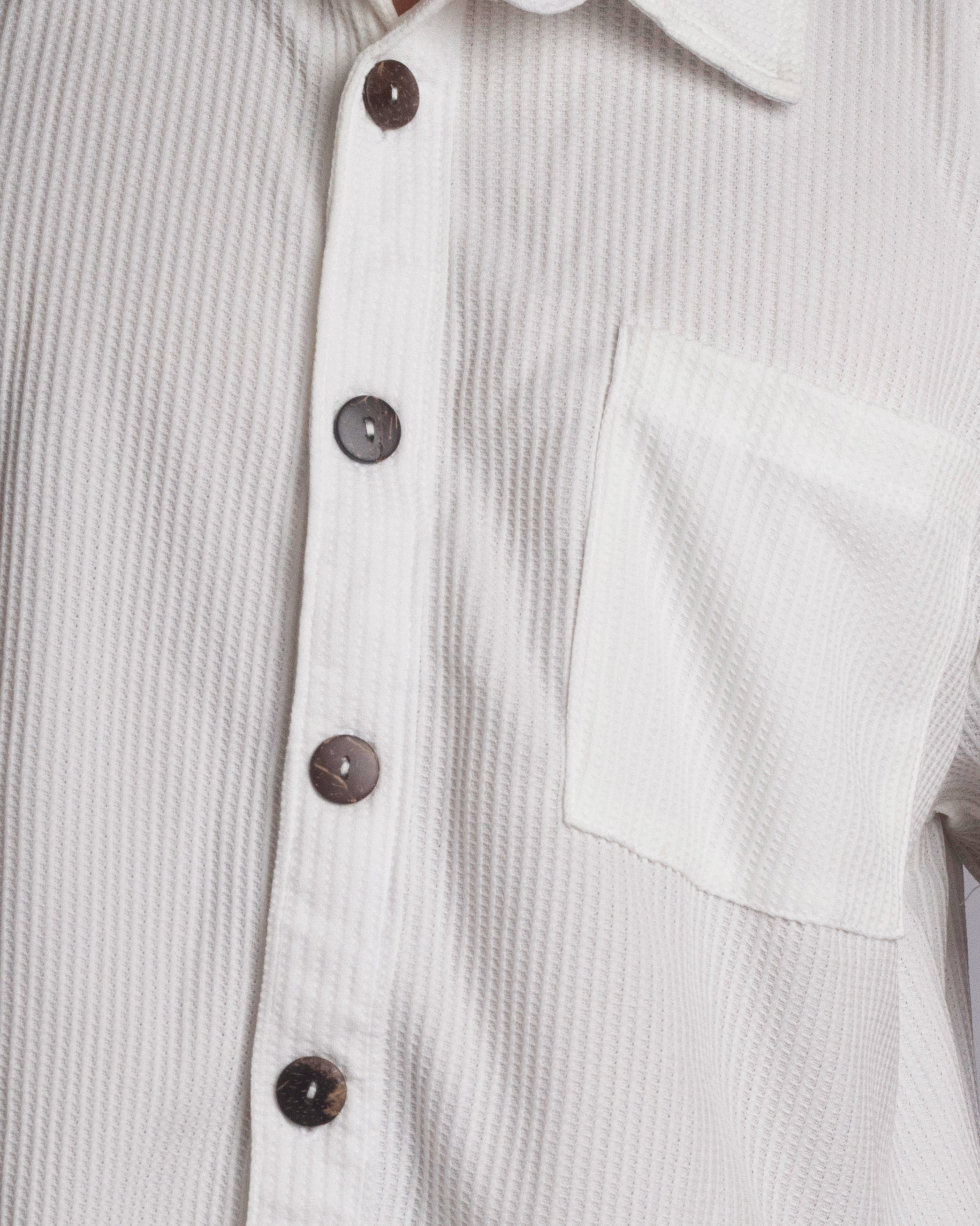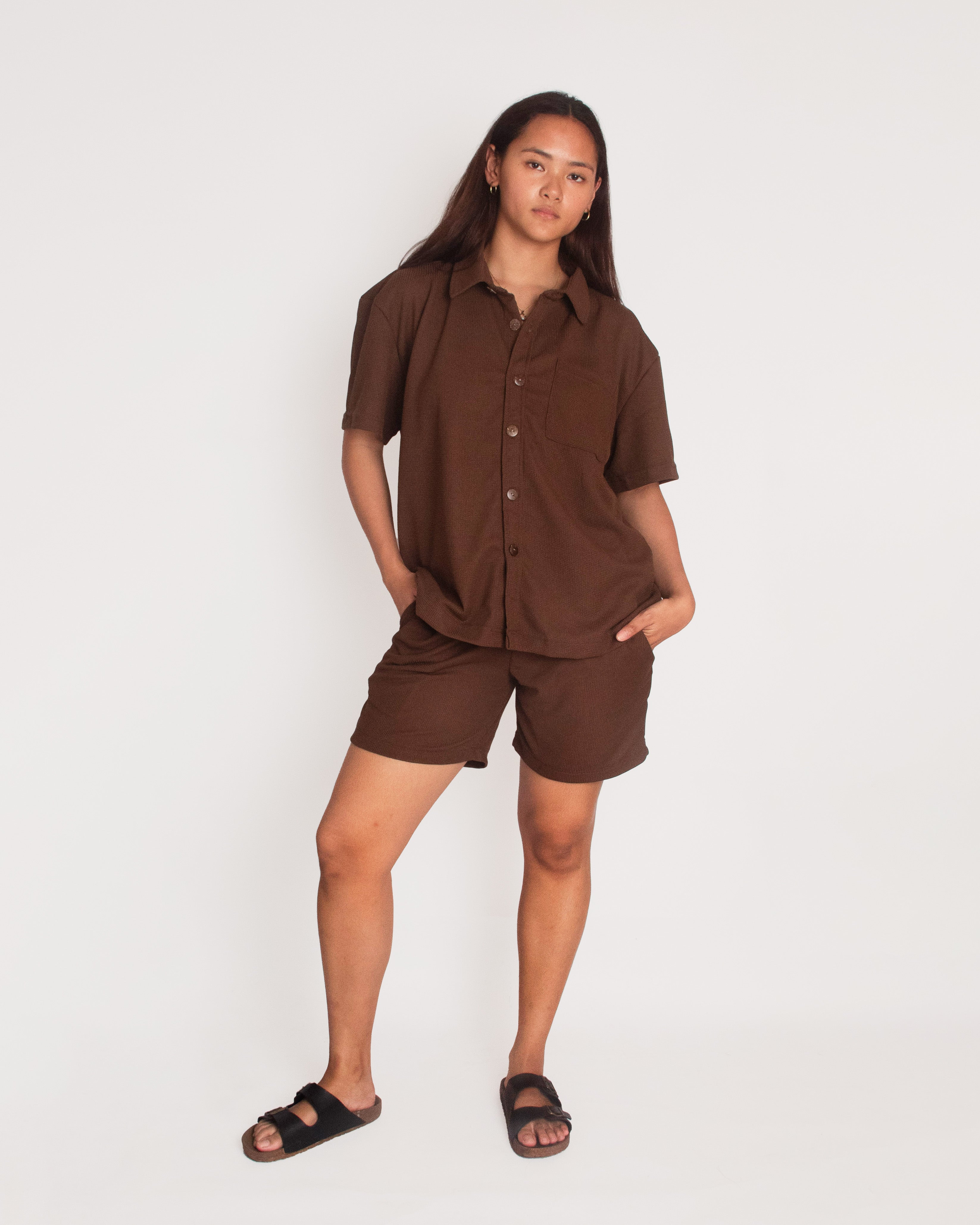 Our Waffle Button-Down Top is made from breathable waffle fabric with a soft, absorbent texture—so you can throw it on after a swim, dry off, and lounge in style. Designed with a relaxed fit and a structured collar, it transitions seamlessly from poolside to sunset cocktails.